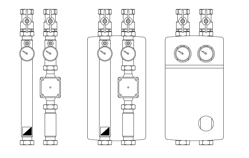 – Rozstaw przyłączy do rozdzielacza: 100 mm – Siłownik ESBE ARA 561 – Pompa Grundfos UPM3 AUTO 25-70 180 ZZZ 0 FIN – miejsce na czujnik 1m3/h -przy podnoszeniu 7m słupa wody – 1,4m3/h -przy podnoszeniu 6m słupa wody – 1,8m3/h -przy podnoszeniu 5m słupa wody – 2,3m3/h – przy podnoszeniu 4m słupa wody – 2,8m3/h- przy podnoszeniu 3m słupa wody – 3,6m3/h- przy podnoszeniu 1,5m słupa wody