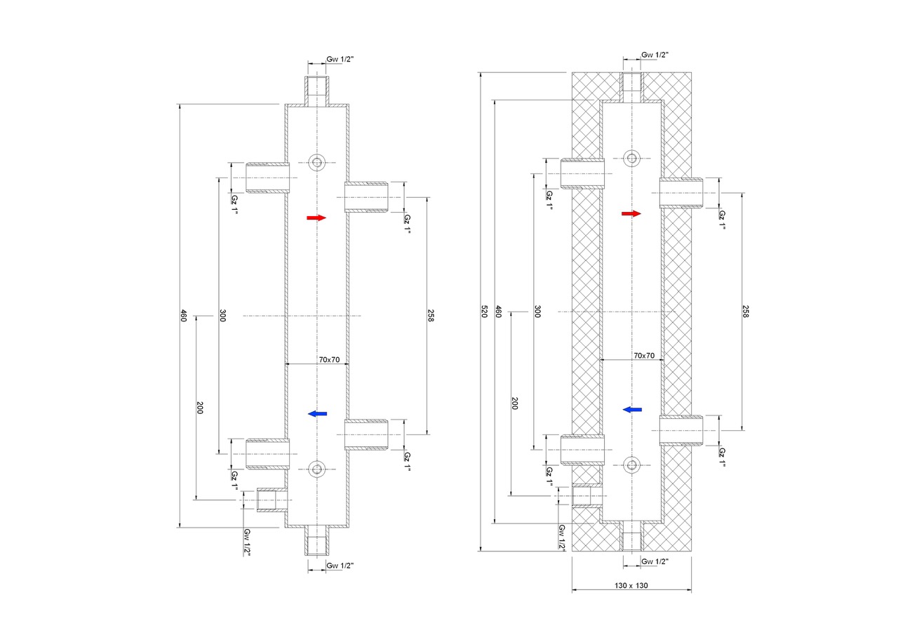 – Przyłącza od strony instalacji: 1″GZ – Przyłącza od strony kotłowni : 1″Gz